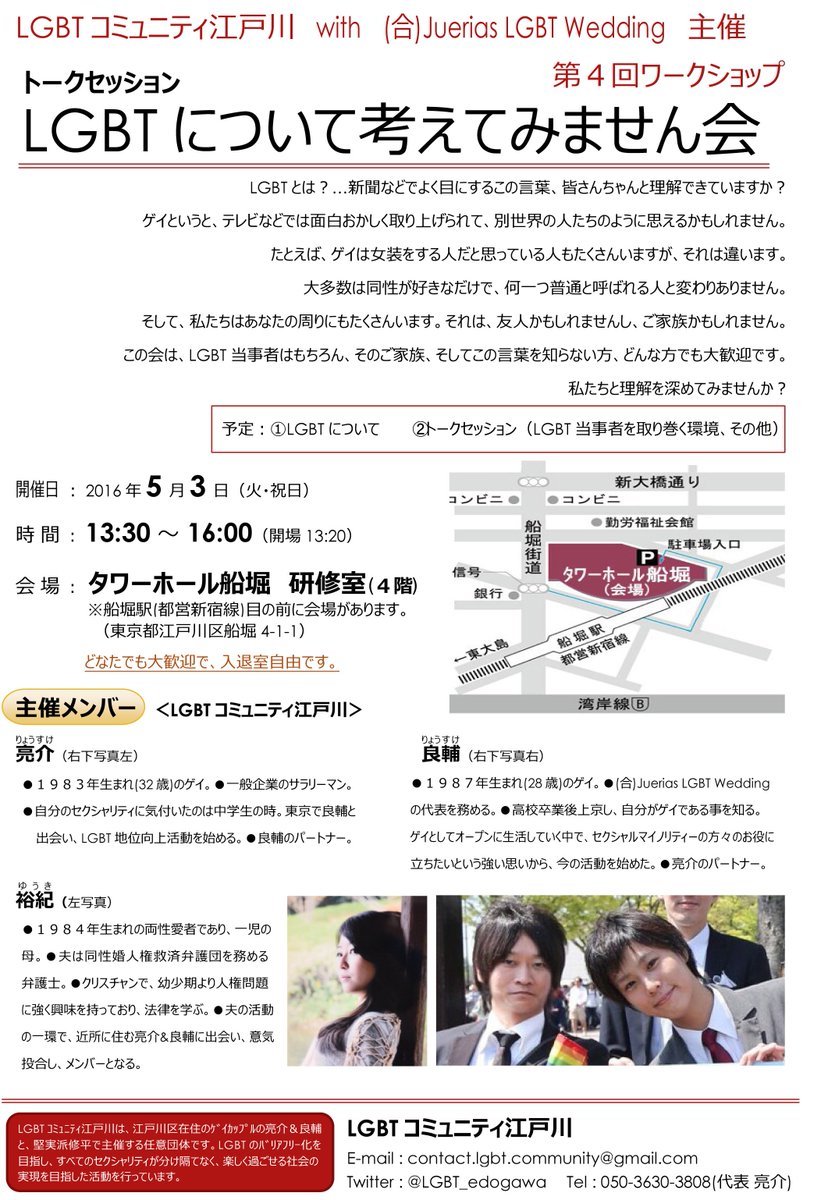江戸川区でLGBTの地位向上活動や地方自治体への働きかけを行う「LGBTコミュニティ江戸川」と、LGBTの結婚式を行うJueriasLGBTweddingがタッグを組み、皆さんと一緒にLGBTについて考えます。